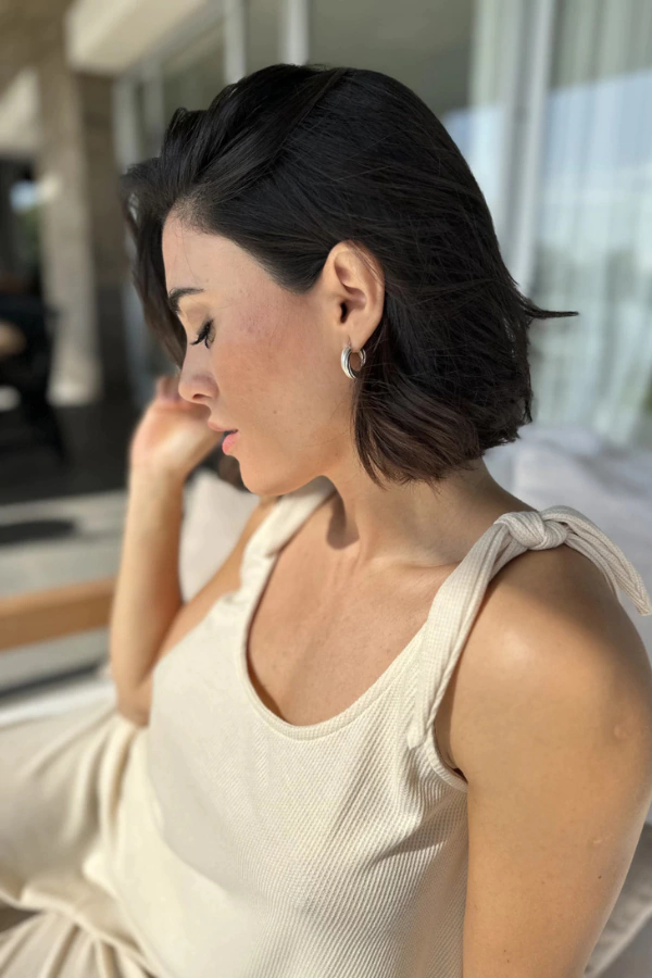 El pantalón tiene un tiro medio-alto y un elástico en la cintura, perfecto para esos días donde quieres estar cómoda pero a la moda. Y la musculosa con escote de cuello redondo.
